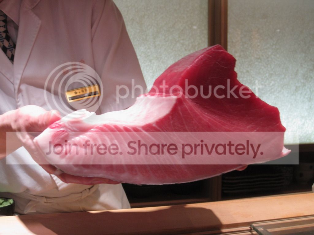 最後, 食Toro 的時間!師傅給我們自己選擇. 老公要了最肥美的Toro, 我選了無咁肥、較紅色的部份. 師傅以為我講錯了, 但我肯定地說要較紅色的部份.