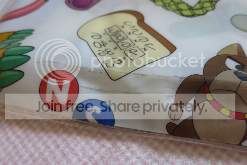 三本雜誌放在百寶袋內, 加上那樽水的重量, 再被很多set 的特別版壓着, 搞到我這個百寶袋的部份白色都甩掉了, 水樽的底部亦凹了少許.